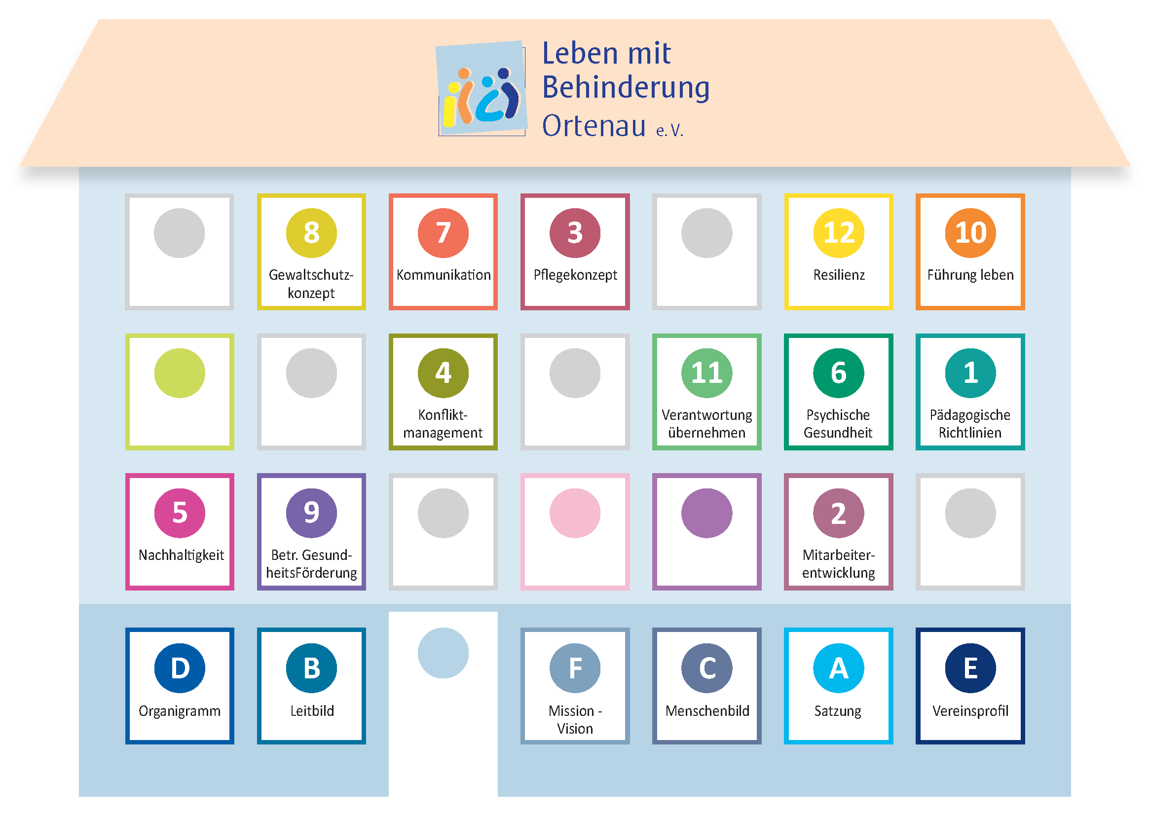 Für die Zukunft bauen wir unser „Wertehaus“ weiter. Es steht für Zusammenhalt und Verantwortung. Jeder kann etwas beitragen. Nur gemeinsam können wir eine starke Gemeinschaft sein. So können Menschen mit Behinderung bestmöglich teilhaben und erfahren Menschlichkei