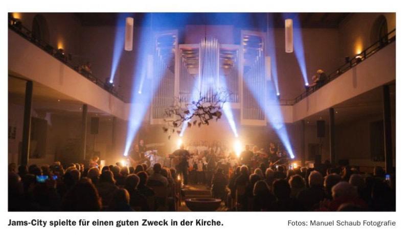 Ungewöhnliche Klänge erschallen an einem Abend im November in der Friedenskirche in Altenheim. Aber sicher wird der Herr vom Altar herab sehr wohlwollend auf die Musiker und ihre Gäste geblickt haben. JAMS City eine Rock- und Pop Coverband aus Neuried gibt ein Konzert für den kleinen Simon. Die Familie wohnt im Ort, die Mutter ist Mitglied im Verein. Im Haus der Familie stehen Umbaumaßnahmen an.
